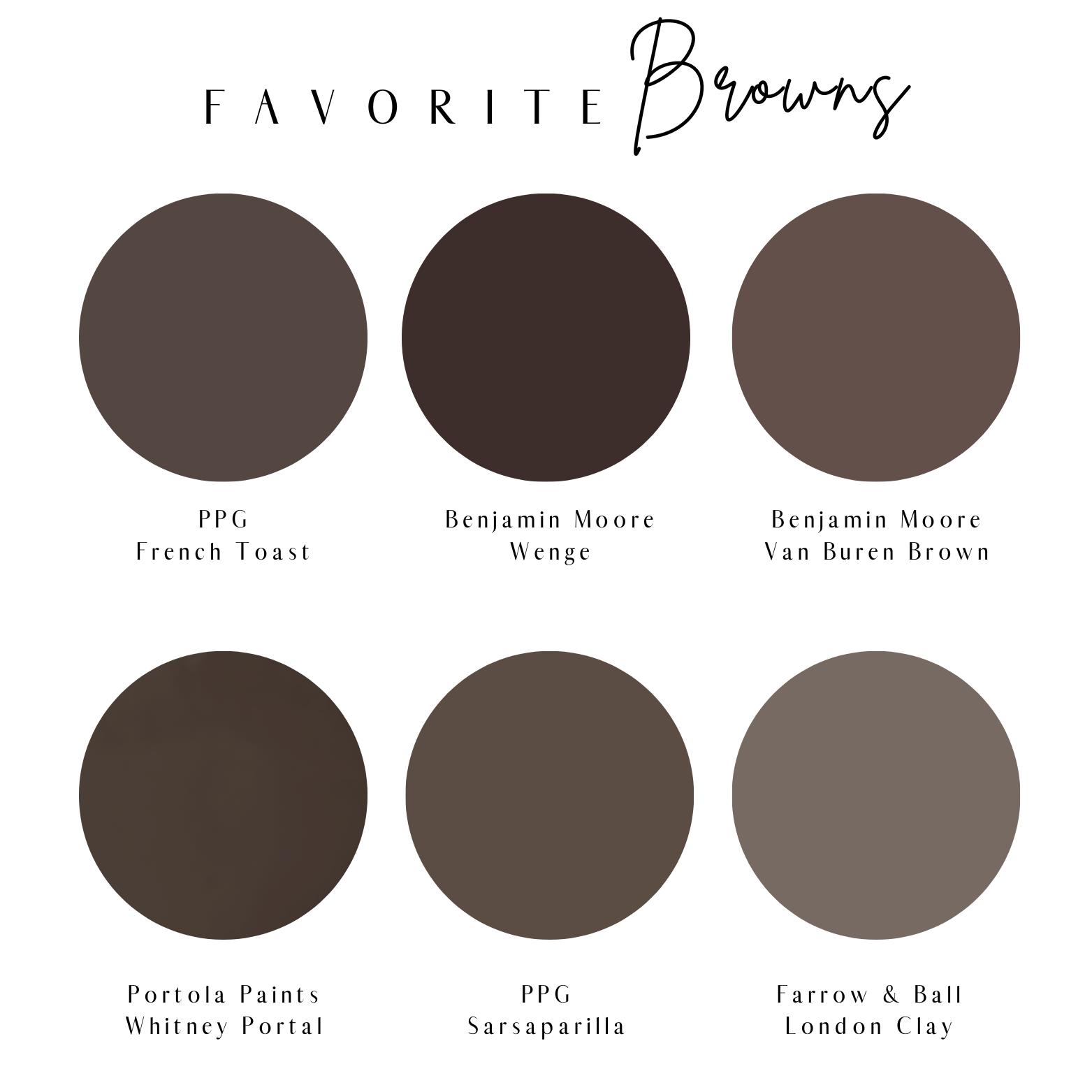 We don’t often use too many browns but, when we do, these are our favorites that are neutral and very chic. Brown paint can bring in a beautiful drama in a space, it’s rich, luxurious, and on trend.