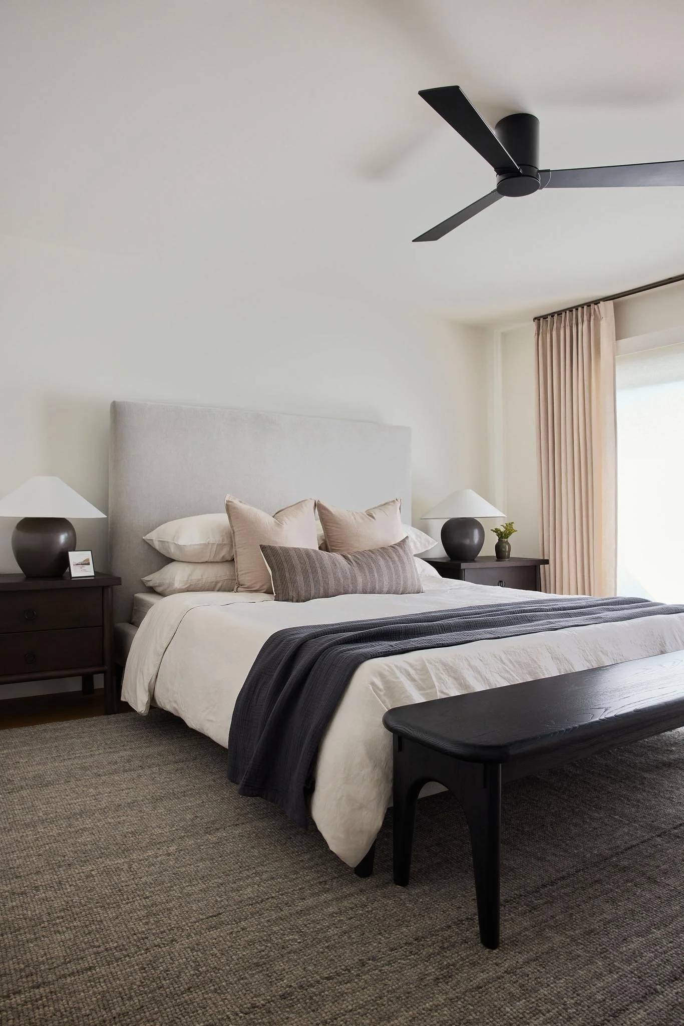 At Velène Design House, we revived the home’s vintage charm, balancing original mid‑century elements, like stone fireplaces and wood paneling, with clean, contemporary lines, subtle traditional touches, and thoughtful textures.
